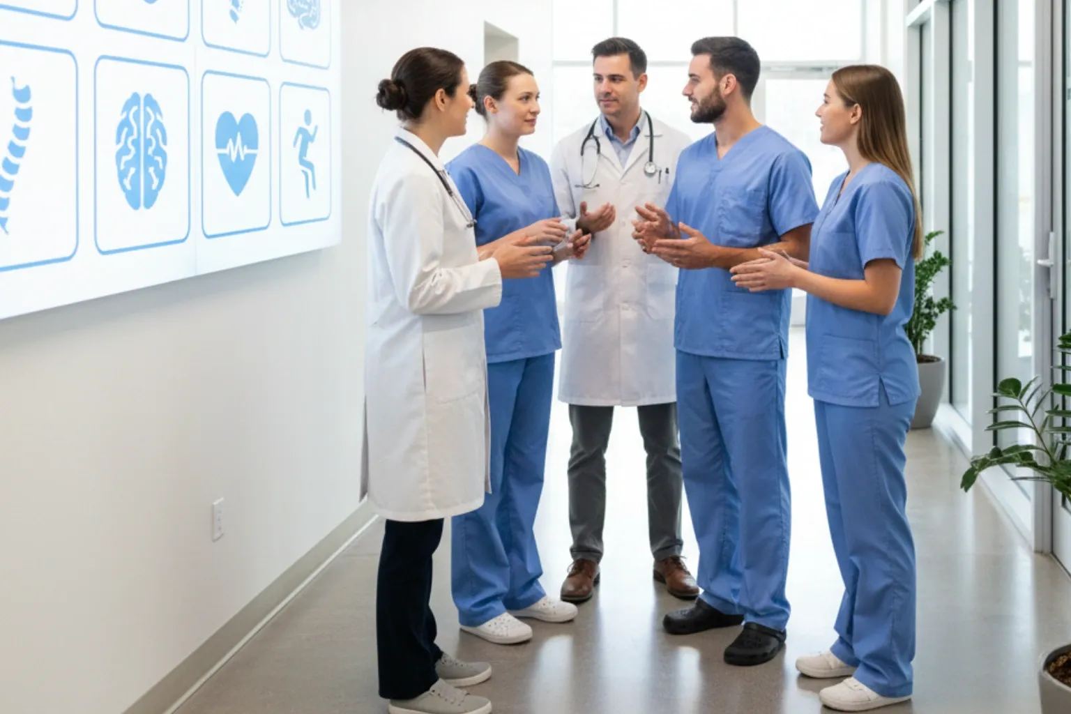 O melhor mix é aquele em que uma especialidade naturalmente alimenta a outra, sem forçar encaminhamentos. Exemplo: ortopedia com fisioterapia e reabilitação, cardiologia com nutrição e exames, gastroenterologia com nutrição e acompanhamento, pediatria com fonoaudiologia e psicologia.