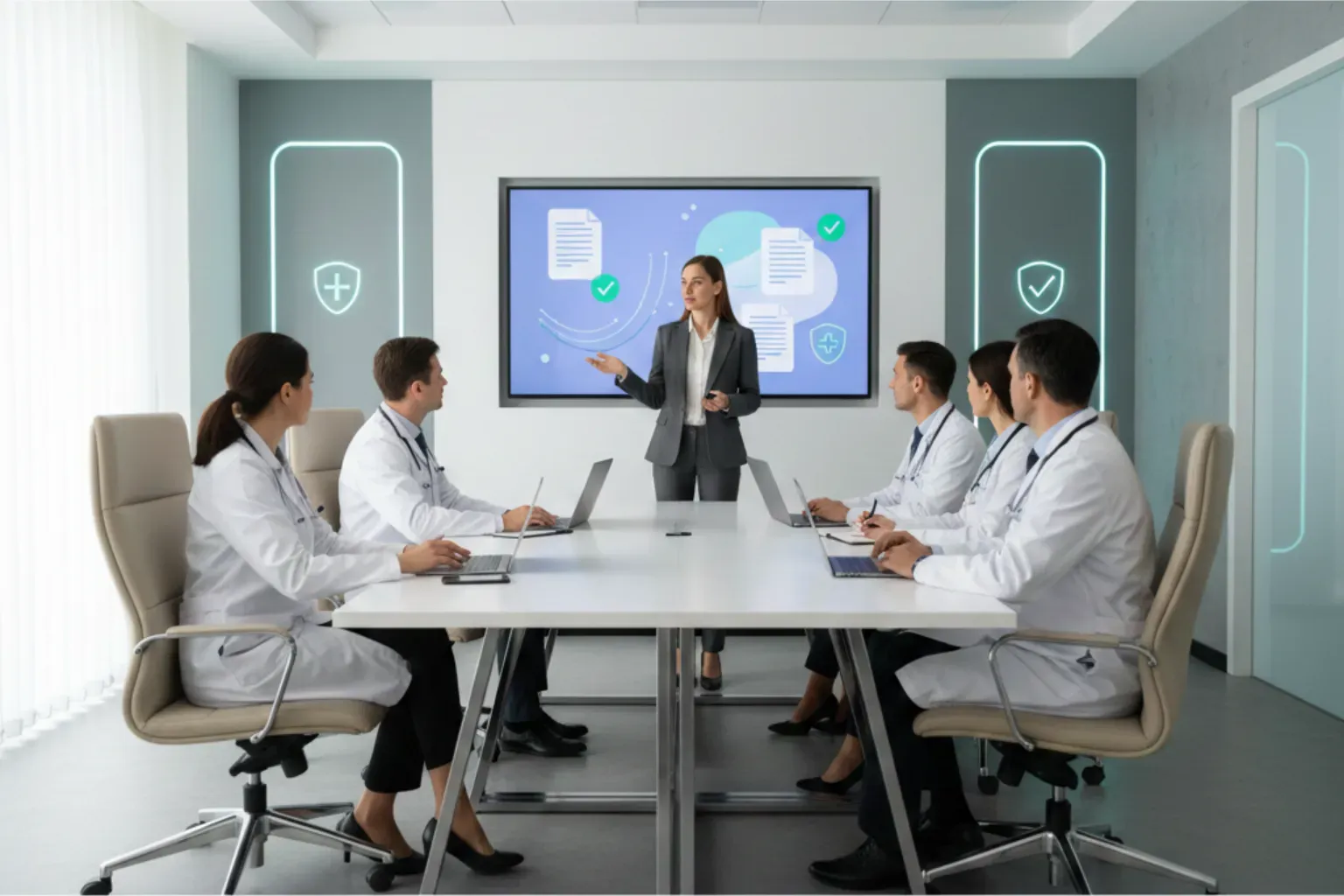 - Comunique os benefícios ao corpo clínico: destaque redução de burocracia, facilidade em auditorias e proteção em eventuais processos.