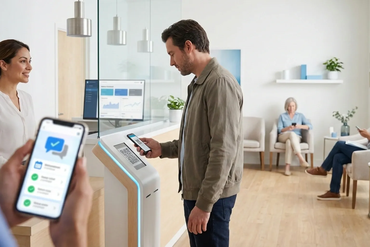 - Check-in digital com QR Code, acelerando o atendimento e otimizando a equipe
