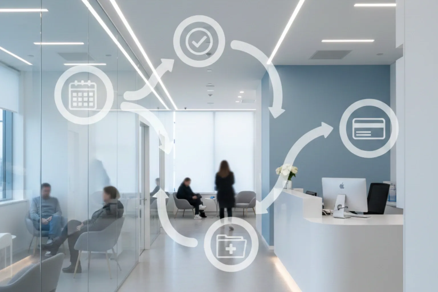 A tecnologia economiza quando existe um fluxo claro. Comece desenhando o caminho do paciente com checkpoints: