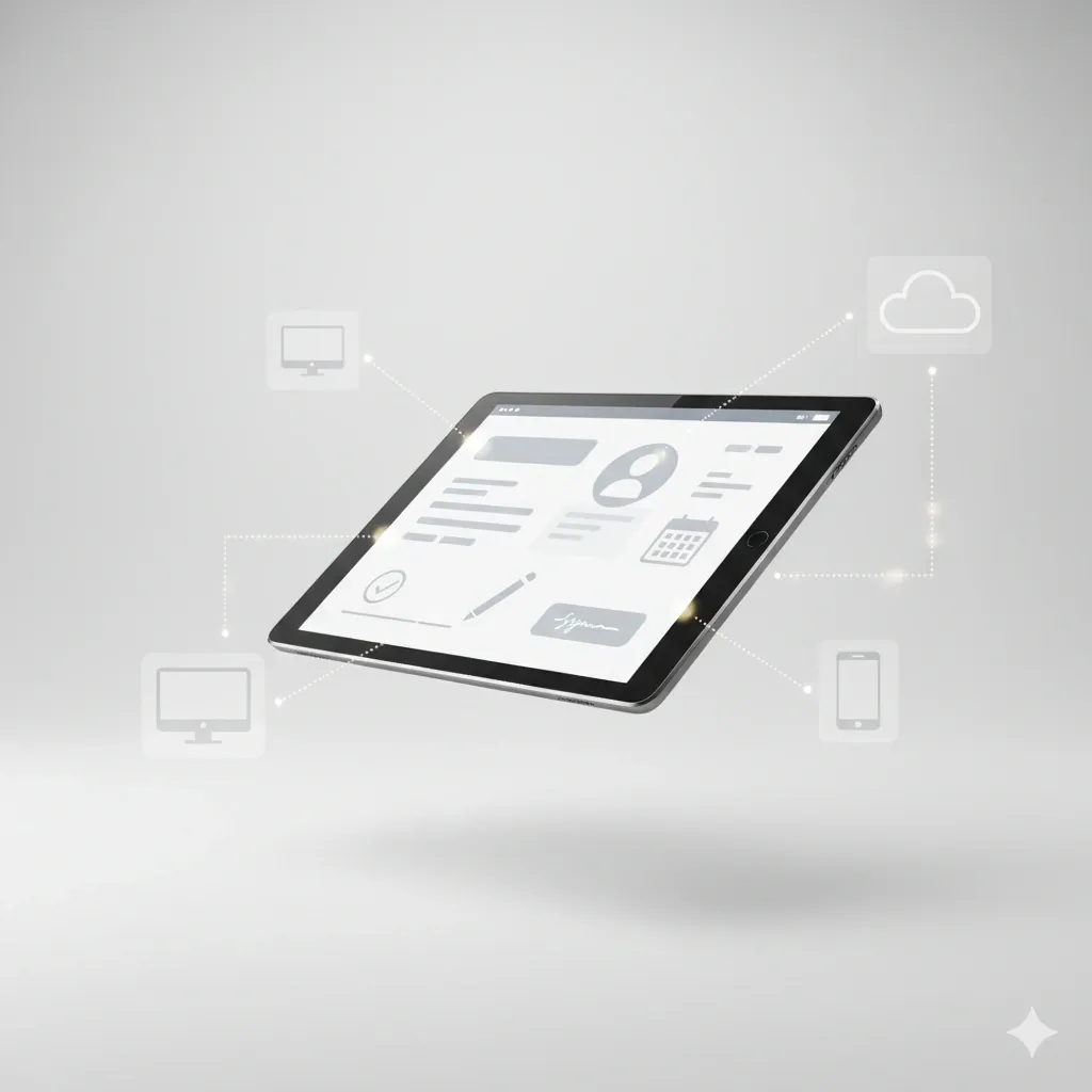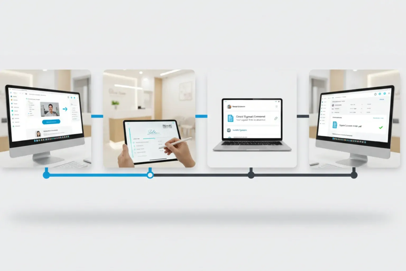 - Um formulário de consentimento que o paciente assina no tablet, celular ou computador.