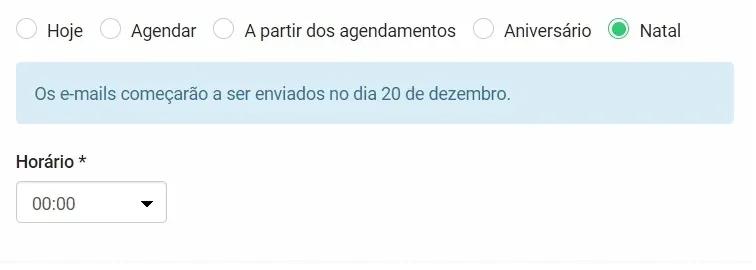 - selecionar a categoria “Natal”, que dispara os envios automaticamente a partir do dia 20 de dezembro.