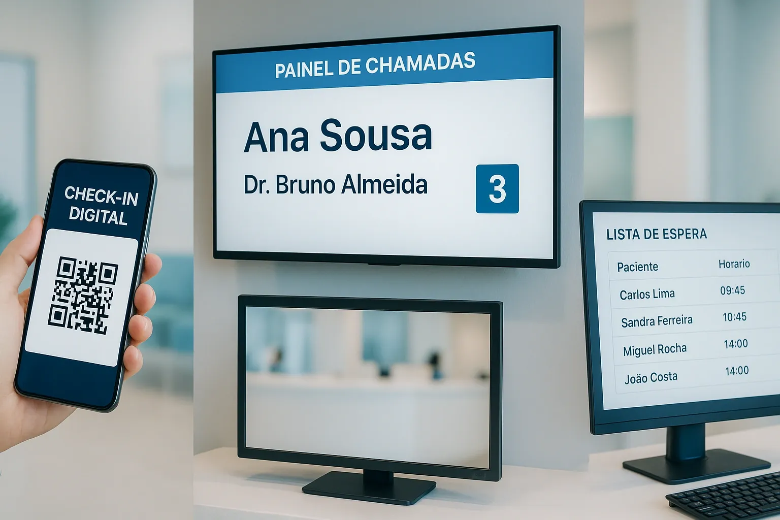 Escalabilidade: Em clínicas com muitos consultórios, o painel organiza o fluxo sem precisar ampliar a equipe na recepção na mesma proporção.