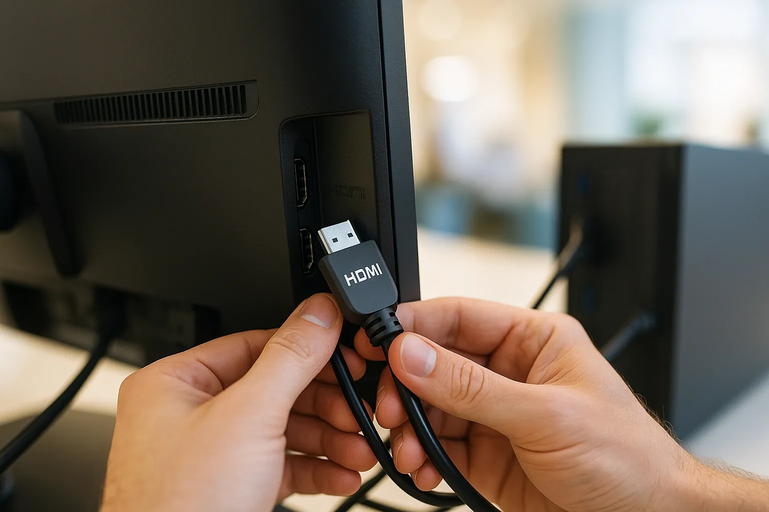 Além do HDMI com cabo, existe também o modelo Wireless. O HDMI Wireless é uma tecnologia que permite transmitir áudio e vídeo sem fios entre dispositivos compatíveis por meio do sinal Wi-Fi, sendo ideal quando a passagem de cabos é inviável (distâncias maiores, limitações de infraestrutura ou exigências estéticas). Nesses cenários, você mantém a exibição do painel com boa qualidade, reduz a necessidade de obras e preserva a recepção visualmente mais limpa.